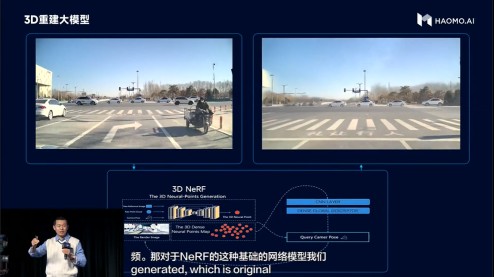其次,3D重建大模型,可实现数据“无中生有”,轻松获得海量corner case。面对“完全从真实数据中积累的corner case困难且昂贵”的行业难题,毫末将NeRF技术应用在自动驾驶场景重建和数据生成中,它通过改变视角、光照、纹理材质的方法,生成高真实感数据,例如通过视角变化可以模拟变道、绕行、调头等各种主车行为,甚至模拟一些即将碰撞的高危险性场景数据。顾维灏表示:“经过大量实验我们发现,通过这种方法生成的数据比人工显式建模再渲染纹理的传统方法效果更好,更适合自动驾驶需求。”目前毫末的成果是增加NeRF生成的数据之后可以将感知的错误率在原来的基础上降低30%以上,并且整个数据生成过程基本不需要人工参与,可以实现全自动化。接下来,毫末将依托绿洲的计算能力,将过去积累的全部场景3D重建化。